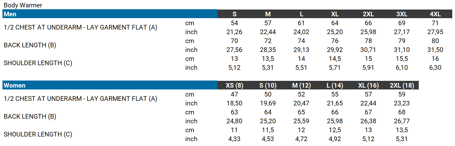• Wash bodywarmer inside out to aid in damage prevention from other items in load