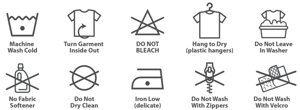 • Wash uniform inside out to aid in damage prevention from other items in load
